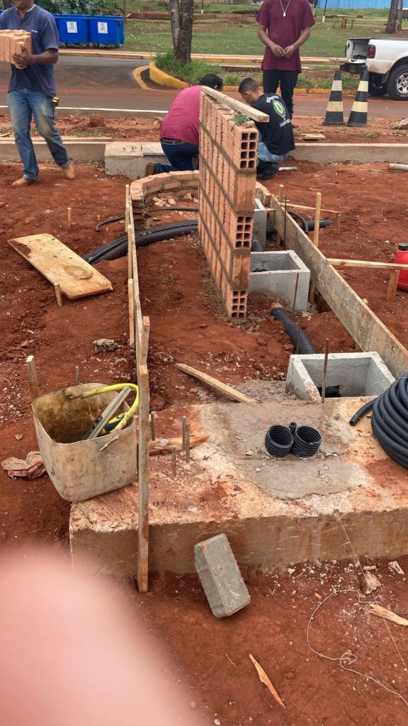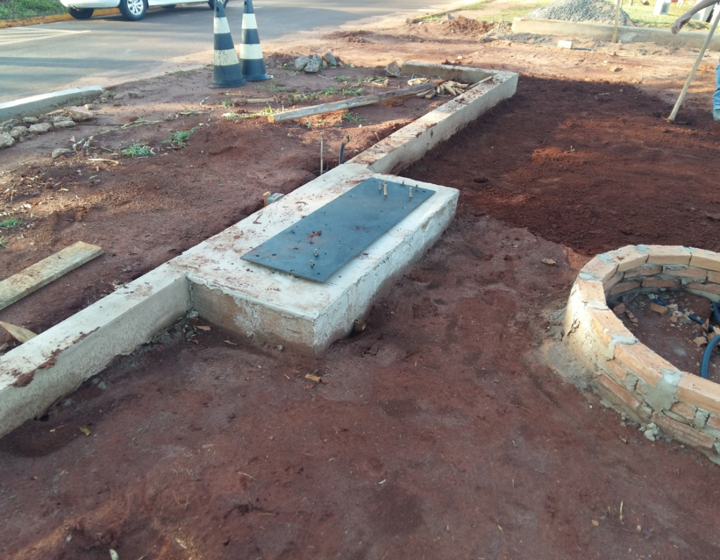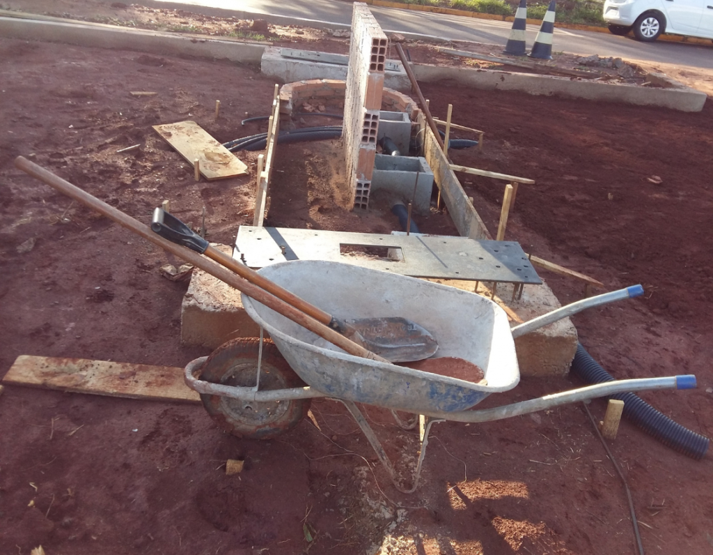 No ponto de recarga dos carros elétricos, verifica-se a base da estrutura em andamento na Figura 3.10.